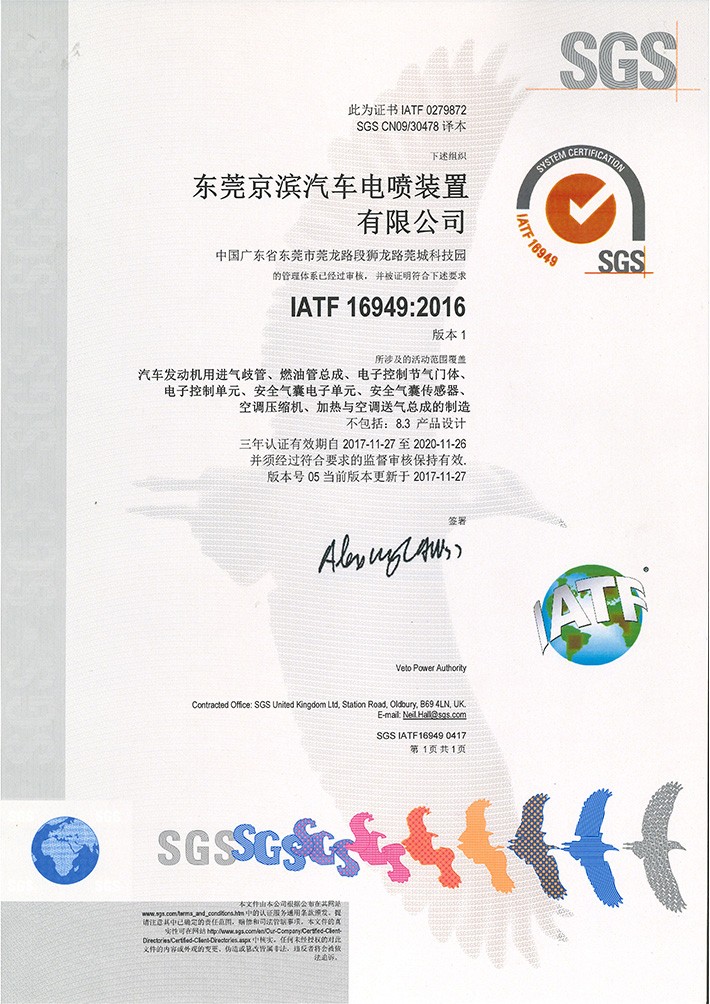 我司在2004年取得ISO9001品质认证,2005年取得ISO14001环境认证,2007年取得IS16949认证,2017年取得IATF16949认证。
